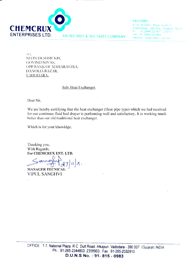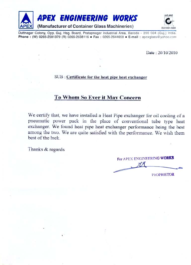 Heat Pipe Heat Exchangers India. Previously known as THERMOSYS is a years old establishment engaged in manufacturing of Heat pipes. We started working on the concept of heat pipe in 1986 when there was hardly any awareness of such a device in the industry. After many years of R&D and hard ship we have established our self as heat pipe manufacturers in the industry. Since the company was established we have developed various types of Heat pipes and systems incorporating heat pipes as per the requirements of end users. We have solved thermal problems of several sectors of industries, including military and space agencies.